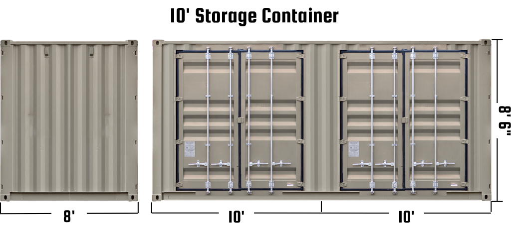 - 10′ x 8′ Unit Containers – 80 ft2 storage area.